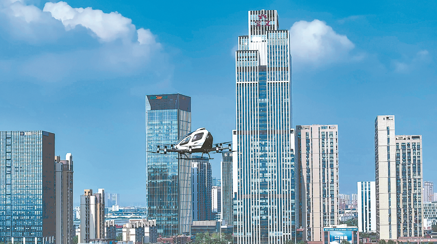 合翼航空運(yùn)營(yíng)的EH216S無(wú)人駕駛載人航空器在合肥上空飛行。(資料圖片) 文創(chuàng)園內(nèi)安達(dá)創(chuàng)展的莫比烏斯環(huán)。(資料圖片) ...
